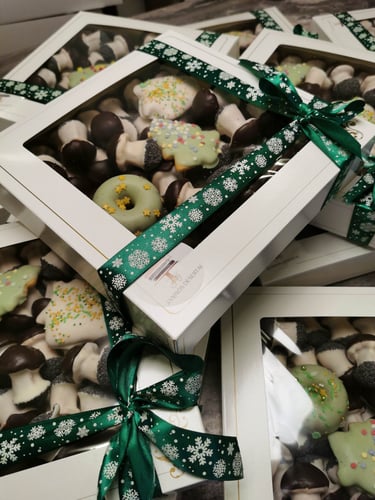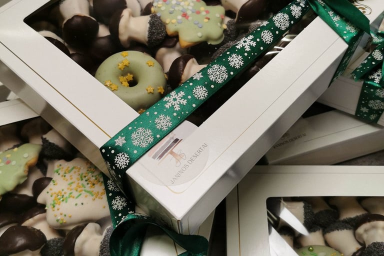 Minkštų biskvitinių grybukų, spurgyčių ir meduolinių sausaininių rinkinukas